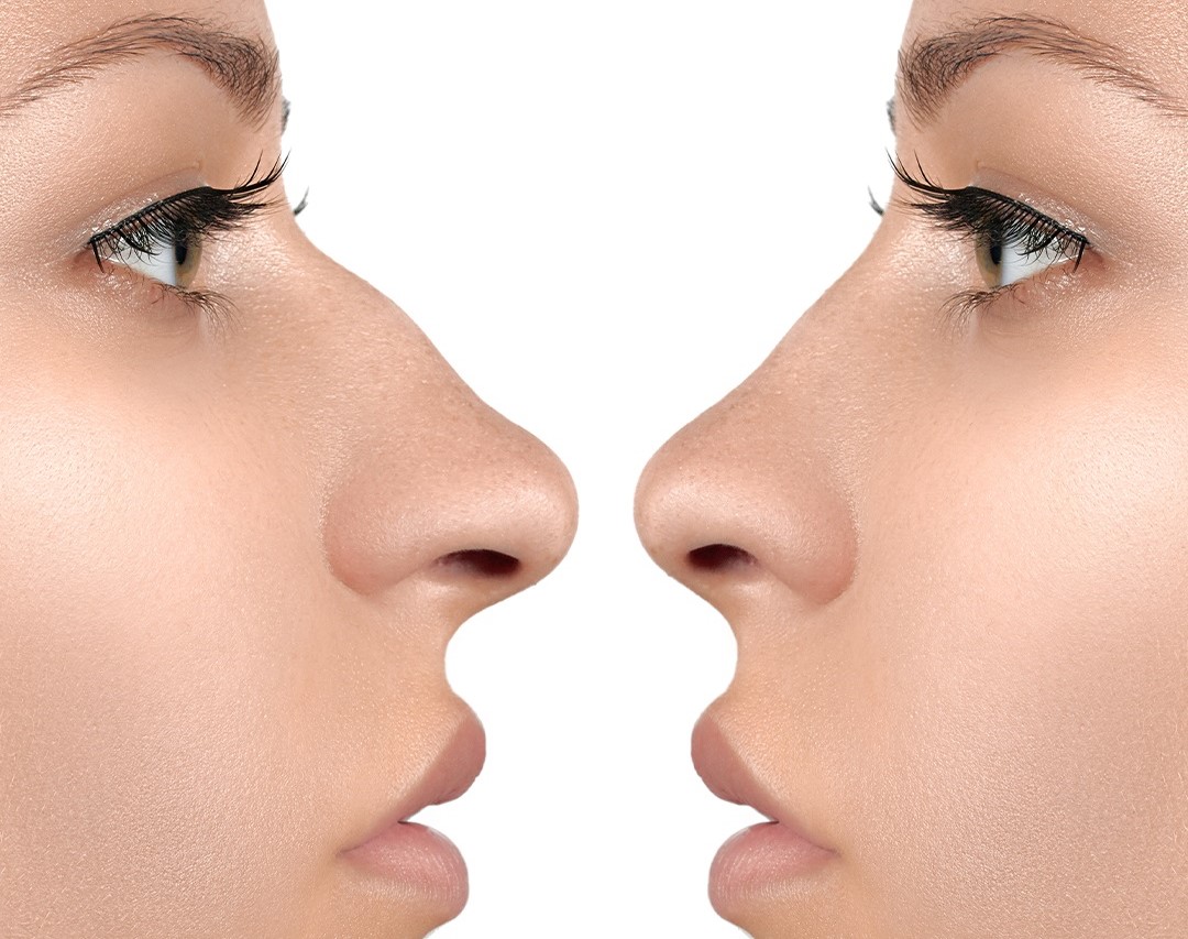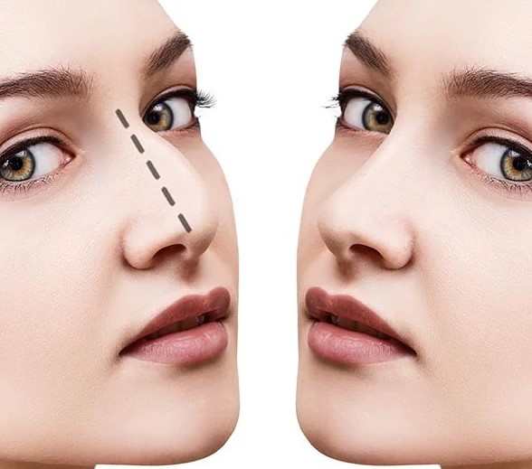 La nariz con giba dorsal es la consulta más frecuente para un cirujano que se especializa en rinoplastía, cuando se presenta como único defecto se puede optar por una rinoplastía de abordaje cerrado. Es frecuente verlo asociado a laterorrinea o una punta nasal caída, para estos casos aconsejamos realizar un abordaje de rinoplastía abierta que nos permite de manera satisfactoria resolver ambos problemas. El exceso de giba dorsal se debe generalmente a un mayor desarrollo de los huesos propios nasales, este defecto característicamente hace que en la vista de frente la luz brille sobre el dorso nasal en sector más prominente de la nariz. Idealmente el reflejo de la luz debe brillar en el sector de definición de la punta nasal.